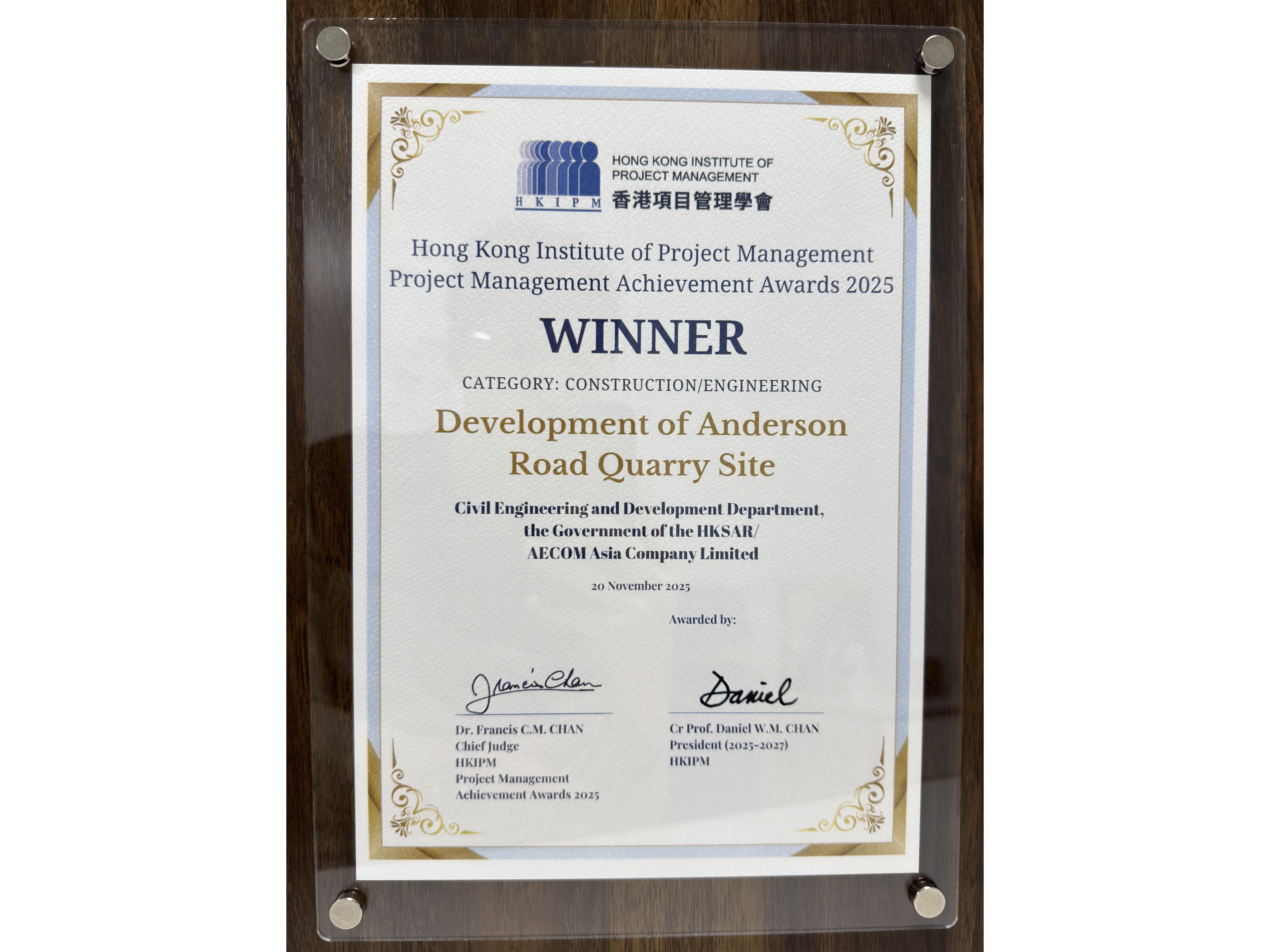 20th November 2025 The ARQ Project has been awarded the “Project Managemen ... more 20th November 2025 The ARQ Project has been awarded the “Project Management Achievement Award 2025” in the Construction/Engineering category by the Hong Kong Institute of Project Management, recognizing the team’s professional performance in sustainable urban development and innovative infrastructure.